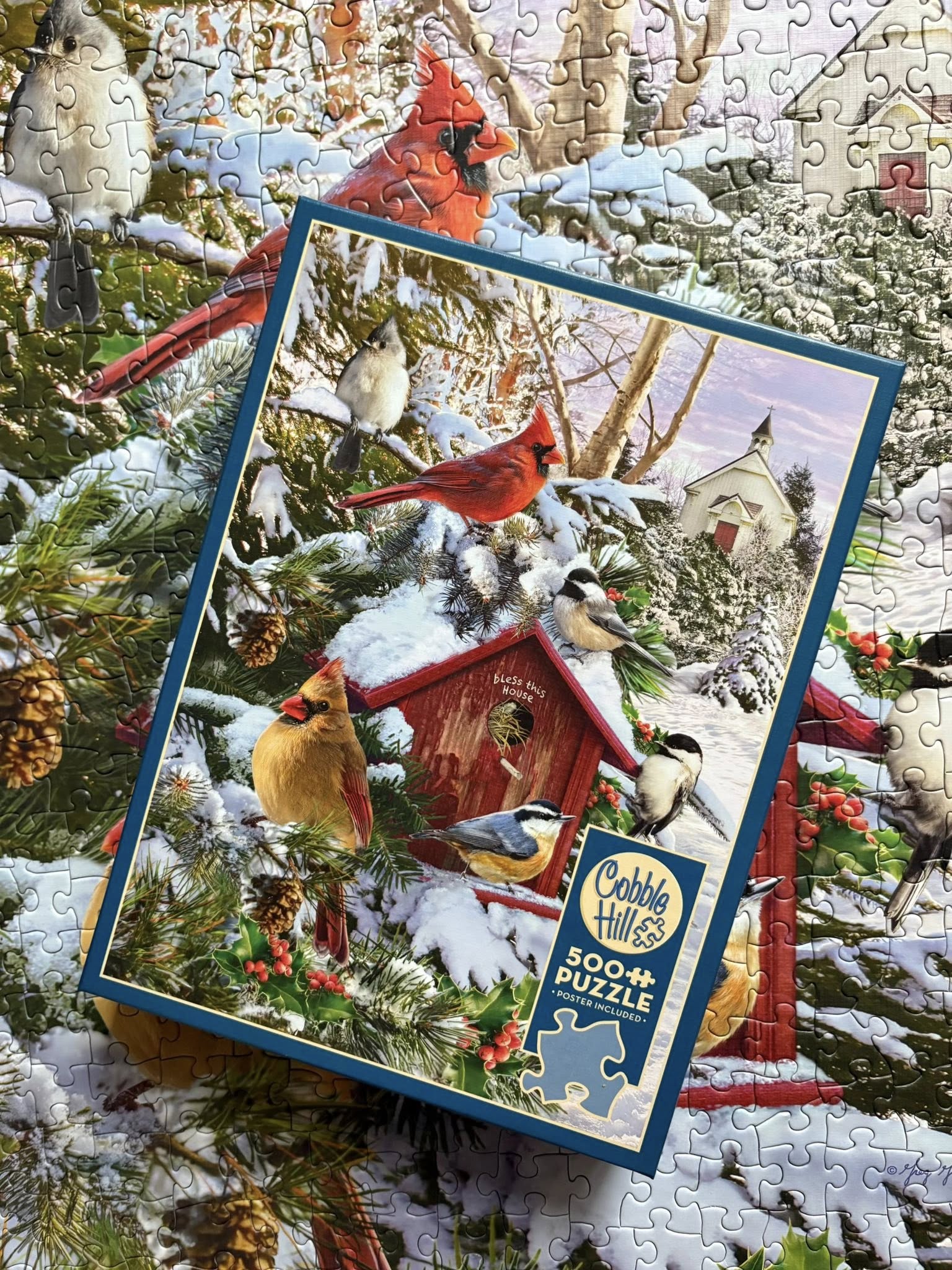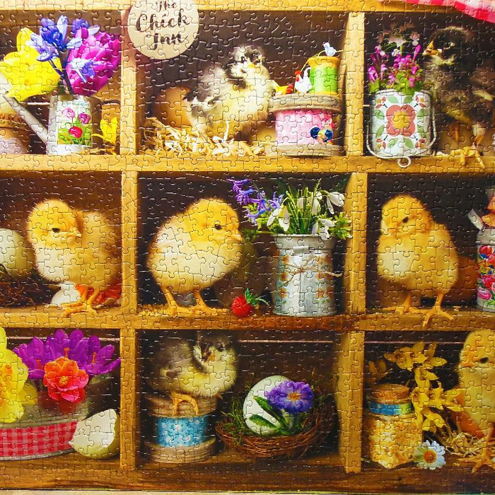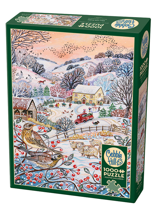 A brood of cats and dogs sit by the open French doors staring at the two snowmen standing tall and fully dressed in hats and scarves on a field of snow. The horses, bunnies and pheasants are enjoying the fresh crisp night air as the as the lamp post and full moon shine brightly upon them. The decorated Christmas tree is vibrant in its gold and red trim that matches the presents on the floor. It looks like a variety of dog breeds live in this home including a Labrador, Lassie, Dachschund and others. What a lovely Merry Christmas this will be for the lucky family who lives here and the Christmas Visitors who are on the way!