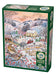 Lucy Grossmith’s whimsical touch brings this winter wonderland to life with rolling hills full of cozy countryside charm. In the foreground, birds and berries brighten the snowy scene, while beyond, cheerful activity fills the landscape - sheep wander the pastures, children build a snowman, and a vintage red truck heads home with a Christmas tree. Chickens peck about the yard and horses graze under a flurry of birds overhead. The yellow farmhouse radiates warmth and love on this crisp winter day, making it a delightful holiday puzzle to enjoy all season long. Hilltop Farm is a cozy 1000 piece winter puzzle.