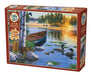 Popular artist Darrell Bush is well known to puzzlers, but Morning on the Lake marks a stunning addition to the Cobble Hill Easy Handling 275 piece collection. Describing his work as “Wilderness Art,” Bush captures the serene beauty of nature and the timeless bond between people and the outdoors. In this peaceful morning scene, a family of loons glides across the golden water, while a lone fisherman drifts quietly near a misty island. A canoe rests by the birch trees, waiting for its next adventure. With large pieces that showcase rich detail and a reference poster included, this puzzle is as calming as the sunrise itself, though its darker shadows add a satisfying challenge for patient puzzlers.