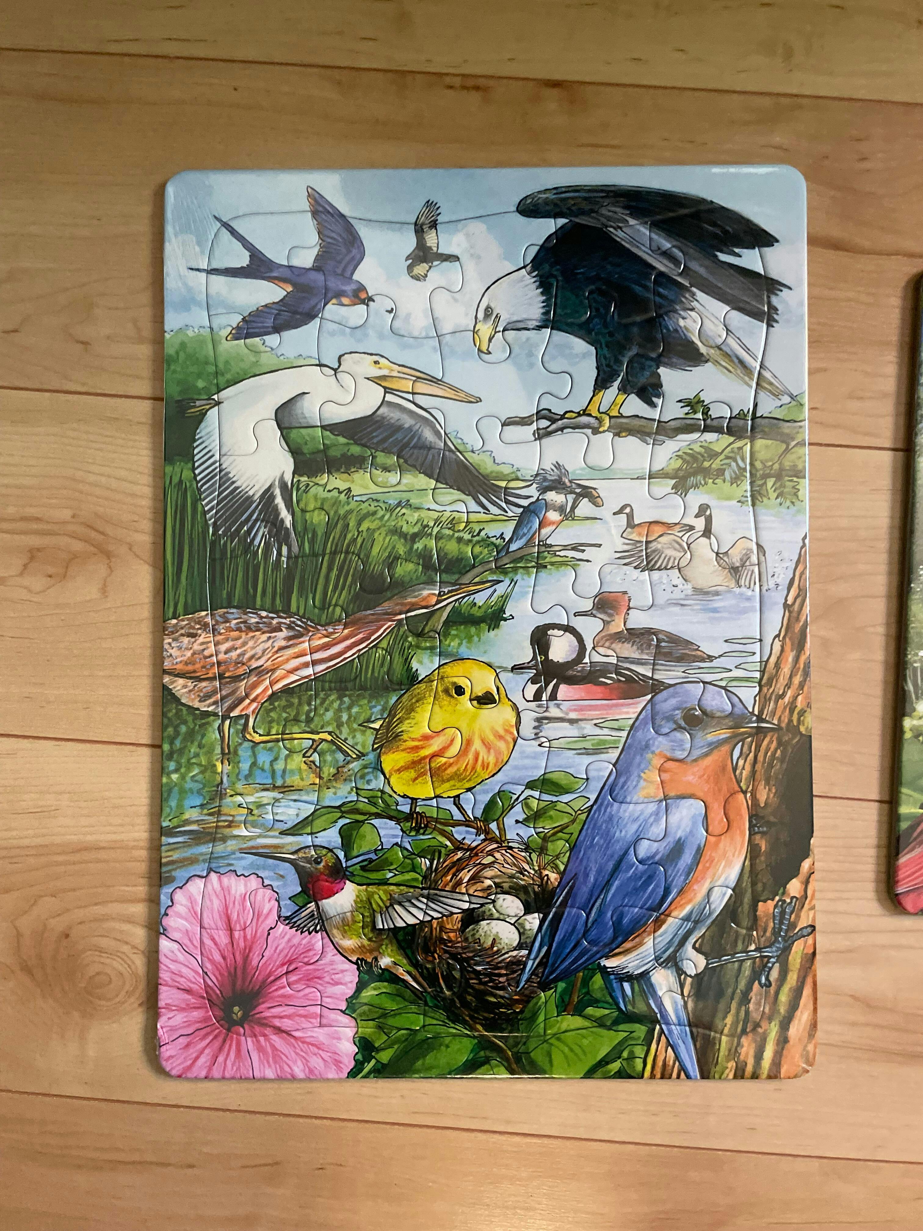 These durable, high quality, 35 piece tray puzzles are designed with kids in mind. An image of the puzzle is found underneath the puzzle pieces, on the tray, to help the wee ones put the pieces back in the proper place. In addition, there are interesting facts about the image on the back of each puzzle! A great learning activity that grows with the child.