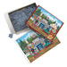 The charm of small-town America comes alive in The Ol’ Roadside Garage, a 275 piece Easy Handling puzzle by Anthony Kleem. A vintage green tow truck, classic gas pumps, and a “Hardware & Seed” shop set the stage for this heartwarming roadside stop. Known for his intricate folk art celebrating everyday life, Kleem balances structure, pattern, and color to evoke simpler times. With large-size pieces designed for comfort and clarity, and a reference poster included, this puzzle offers a satisfying, nostalgic experience from start to finish.